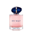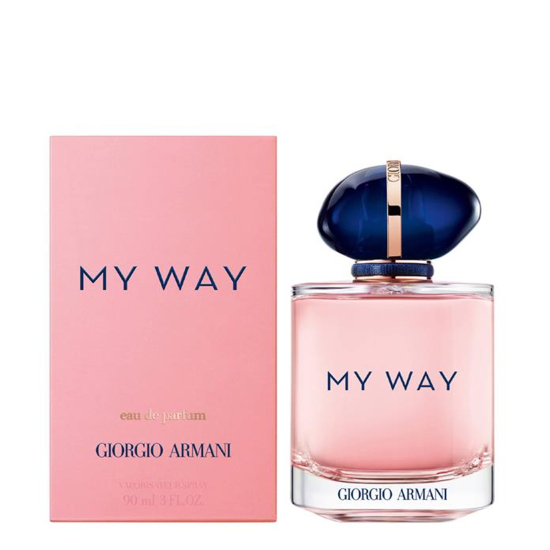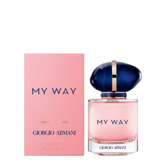 MY WAY bočica je poput talismana koji zrači onim što je zaista važno. Čep plave i zlatne boje je talisman dizajniran tako da ćete ga želeti uvek sa sobom, gde god da krenete. Boja plavog kamena simbolizuje boju Zemlje, univerzalnu boju koja nas ujedinjuje i povezuje sa našom planetom. Sa druge strane, zlatni prsten simbolizuje jedinstven put koji svako od nas prati. Na njemu se nalazi i poseban pečat Giorgio Armani. Luksuzna plava tkanina posveta je ikonskom svetu visoke mode Giorgia Armanija. Svaki format mirisa MY WAY — 3, 5 ili 9 ml — dizajniran je da se može otvoriti i dopuniti refill pakovanjem. My Way Eau de Parfum Refill ima inovativan dizajn koji omogućava ponovno punjenje bočice bez gubitka i jedne kapi mirisa.