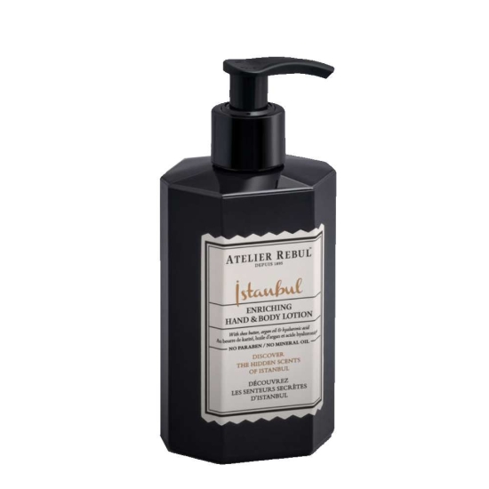Losion za ruke i telo iz naše signature kolekcije Istanbul. Otkrijte skrivene mirise Istanbula uz ovaj negujući losion za ruke i telo. Obogaćen shea maslacem, arganovim uljem i hijaluronskom kiselinom, omekšava i hidrira tvoju kožu.