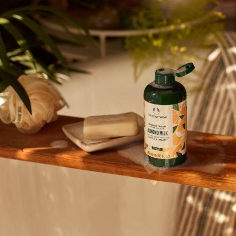 Certifikovano od strane Vegan Society i napravljeno od 93% sastojaka prirodnog porekla, uključujući organsko bademovo mleko iz programa Community Fair Trade iz Španije, The Body Shop dragocena krema za tuširanje čini tvoju kožu mekom, čistom i hidriranom. Ovaj miris podseća na slatke bademe – prenosi te u sunčani zasad badema, sa notama sandalovine, jasmina, ruže i mošusa.