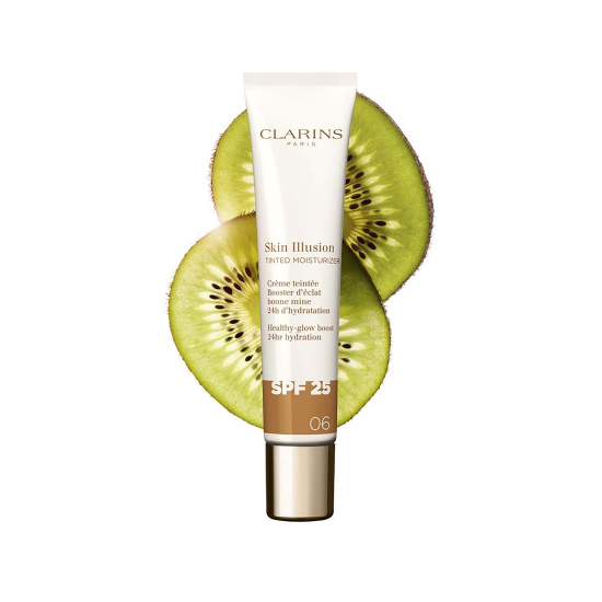 Skin Illusion Tinted Moisturiser SPF25 zahvaljujući spoju šminke i nege, prirodno ujednačava ten, dok njegova formula trenutno povećava blistavost kože za 95% i smanjuje vidljivost finih linija i bora za 24%. Njegova lagana tekstura pruža prirodan, blistav završetak.