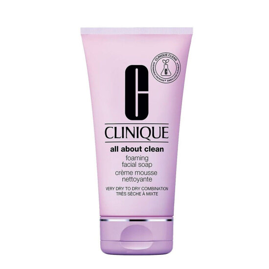 Clinique All About Clean™ Foaming Facial Soap je kremasti penasti čistač koji nežno, ali temeljno uklanja zagađenje, prljavštinu, višak sebuma i šminku, ostavljajući kožu glatkom, čistom i osveženom. Formula je pažljivo razvijena kako bi očistila lice bez isušivanja i narušavanja prirodne ravnoteže vlage u koži. Nakon upotrebe, suva koža ostaje meka, prijatna i hidrirana, bez osećaja zatezanja ili suvoće. Ovaj nežni čistač ne isušuje i ne skida prirodne lipide s kože, što ga čini idealnim za svakodnevnu upotrebu, čak i kod osetljive kože.