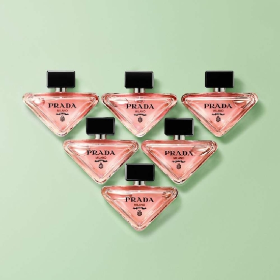 Bočica mirisa Prada Paradoxe izraz je mogućnosti reinterpretacije i neprestanog, radoznalog dijaloga brenda Prada. Oblik bočice nadahnut je izvornim logotipom brenda Prada, što čini ovu reinterpretaciju logotipa bezvremenskim komadom.